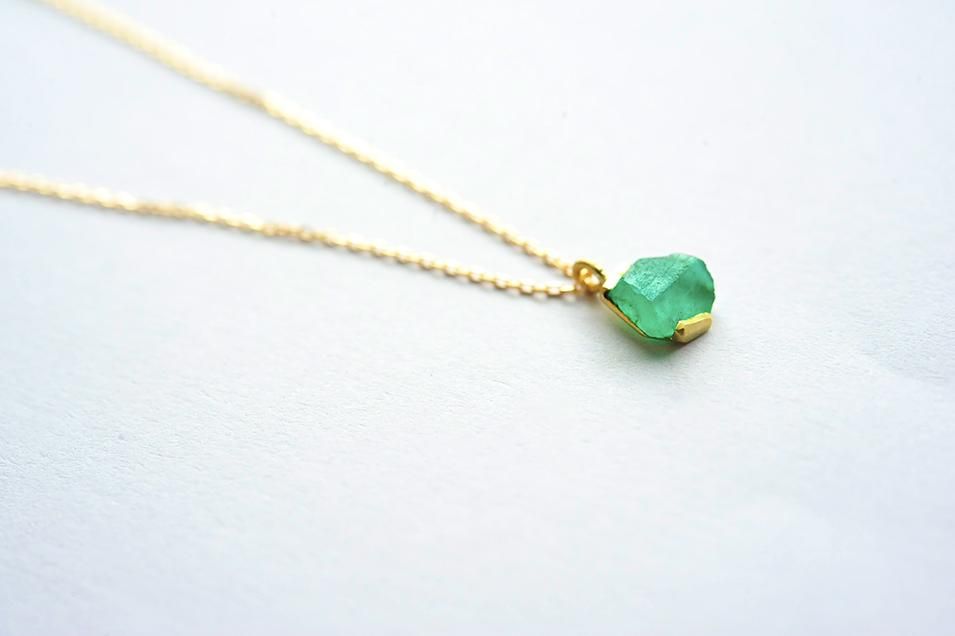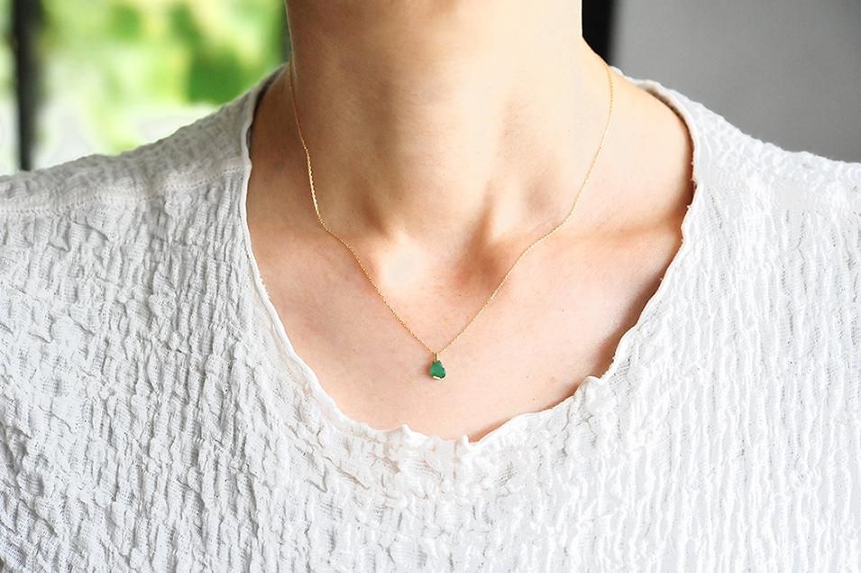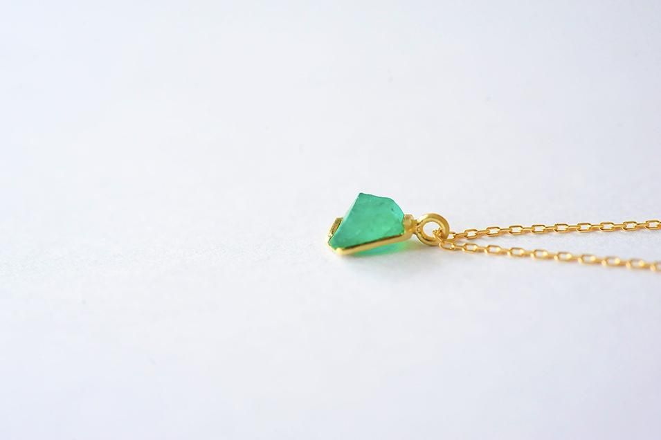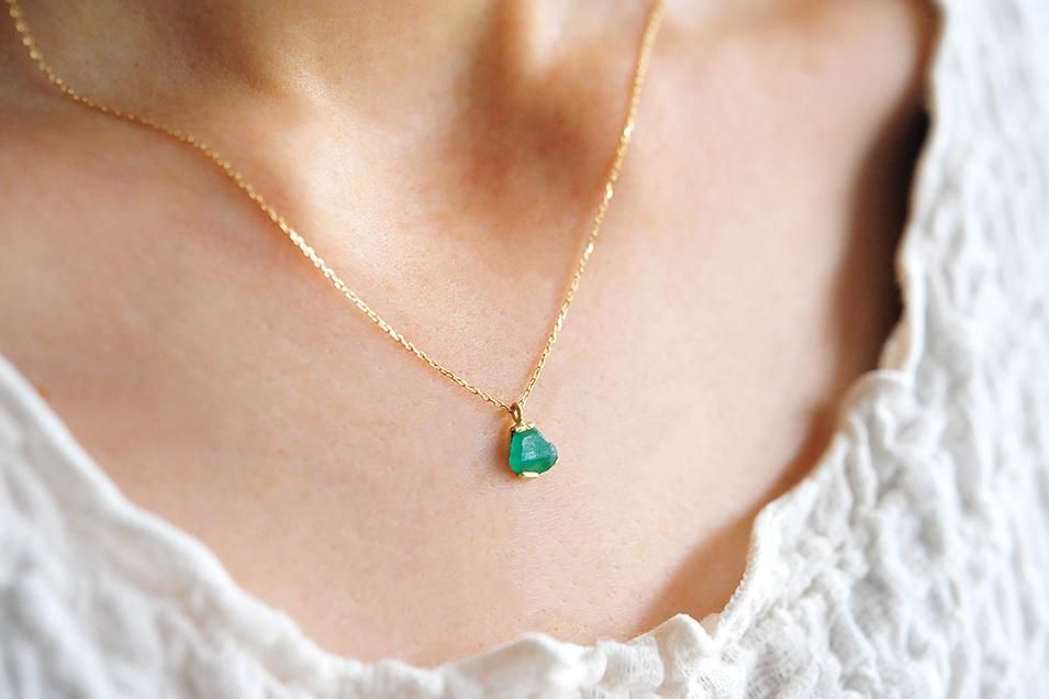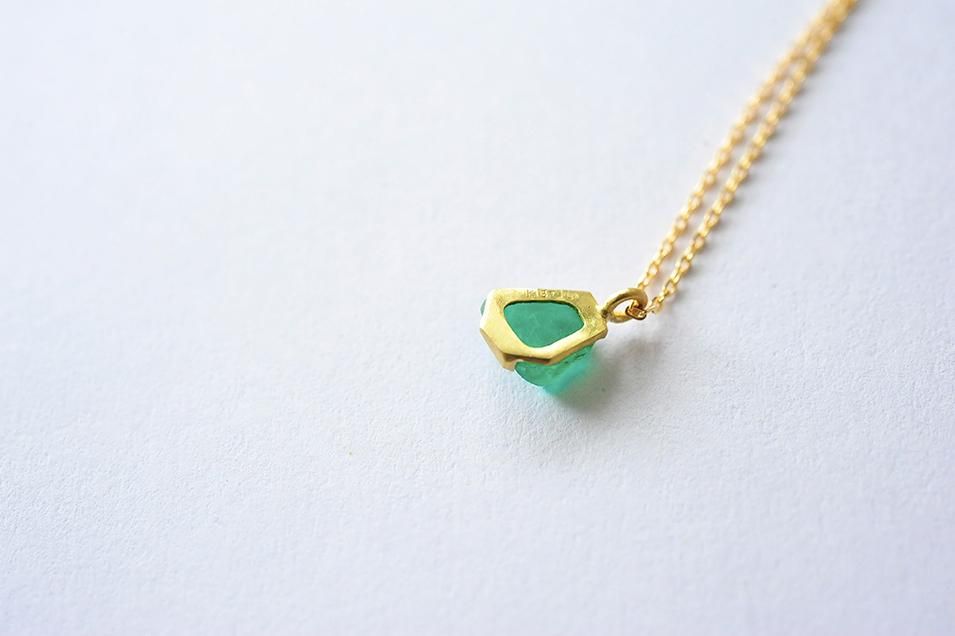 K18YGイエローゴールドとエメラルドの原石を使用したネックレスです。